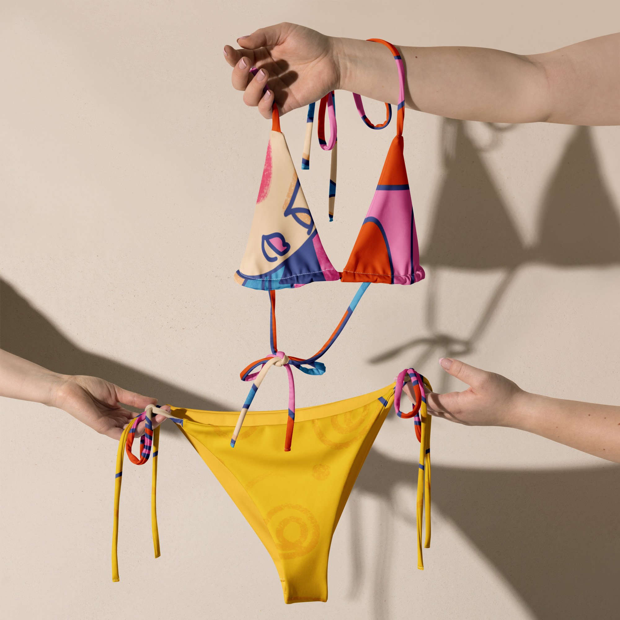 Bright Colourful Recycled String Bikini with Art Print